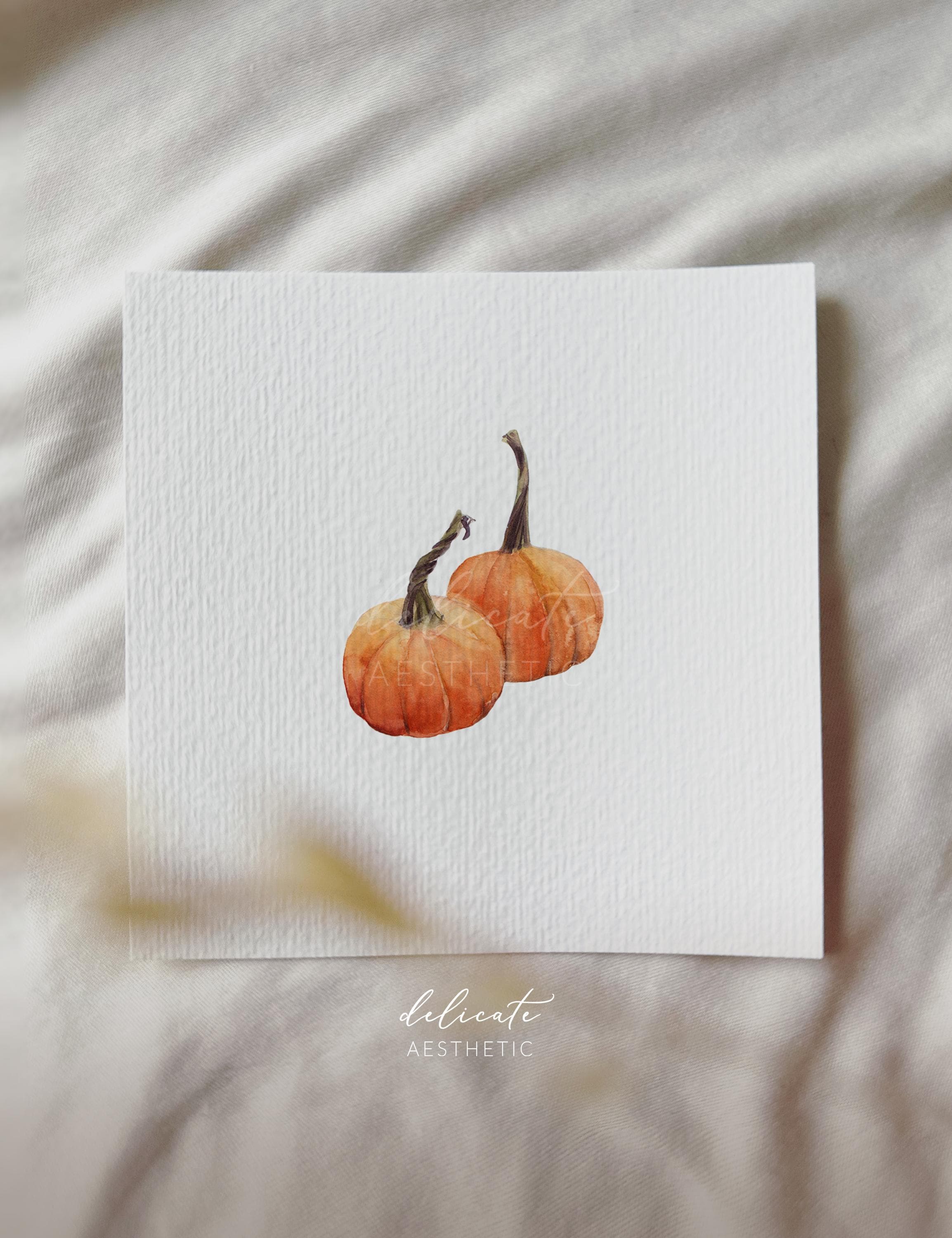 Two magnificent orange pumpkins - miniature art print - print from my original watercolor | DelicateAesthetic