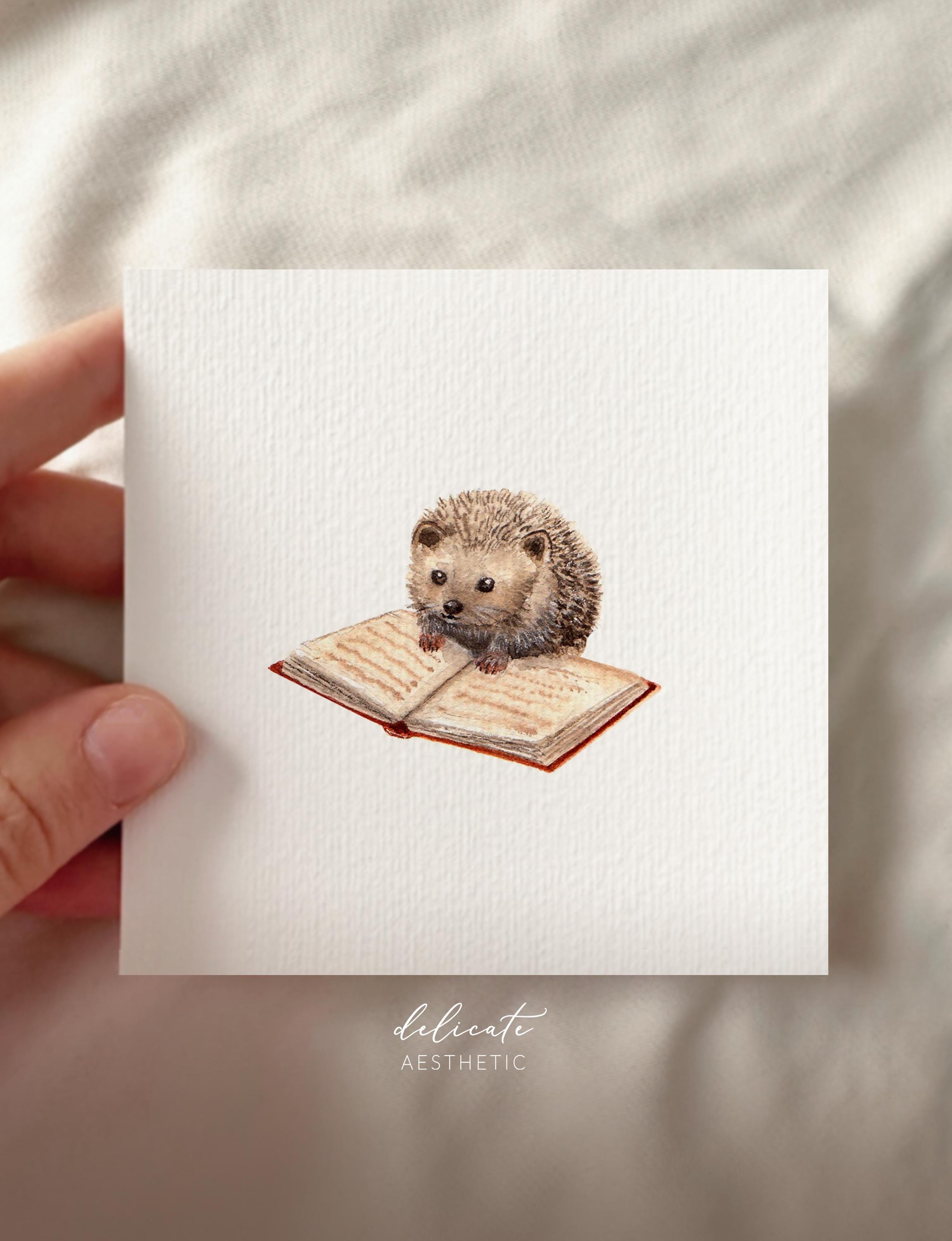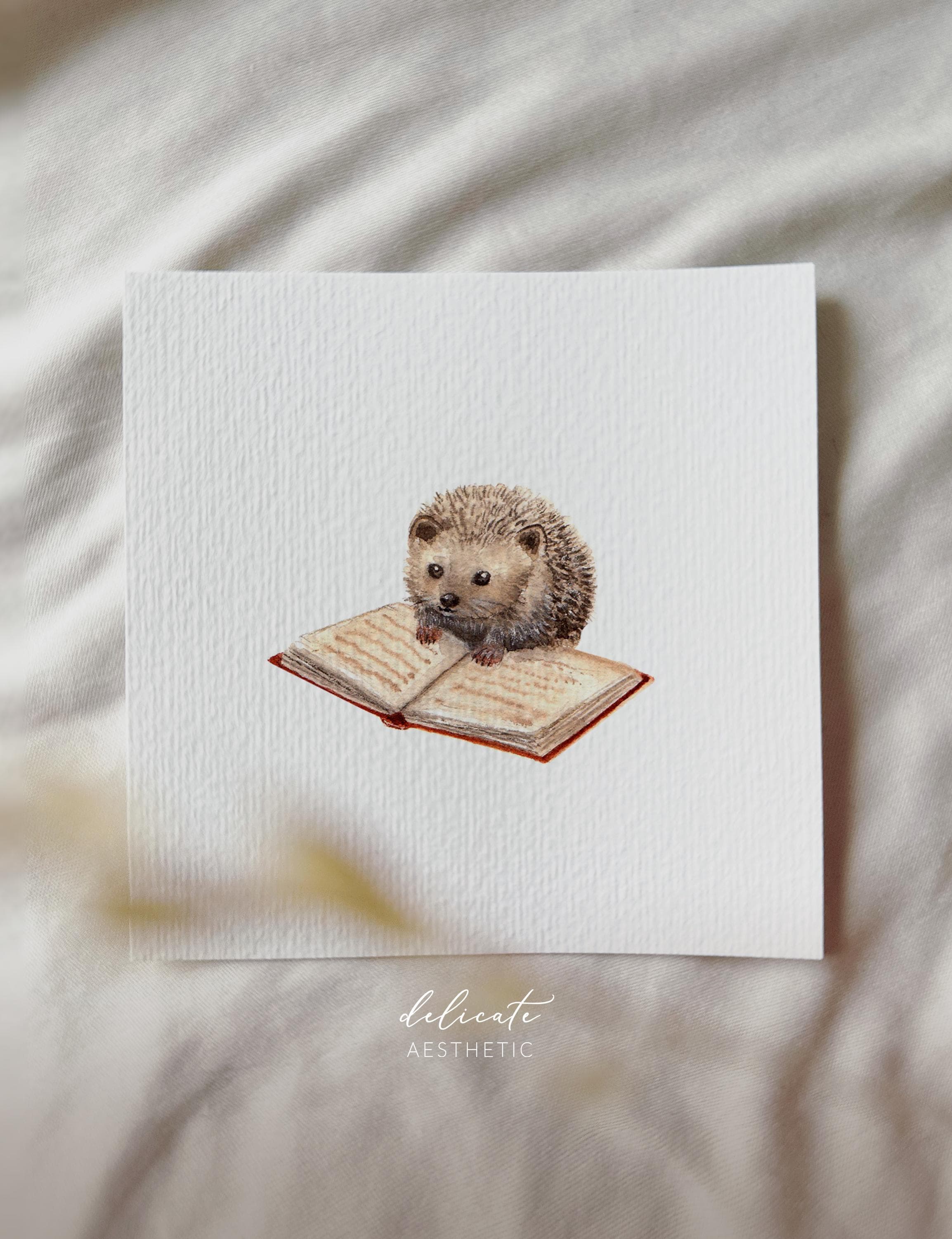 Hedgehog the Storyteller - Miniature Art Print - Print from my Original Watercolor | DelicateAesthetic