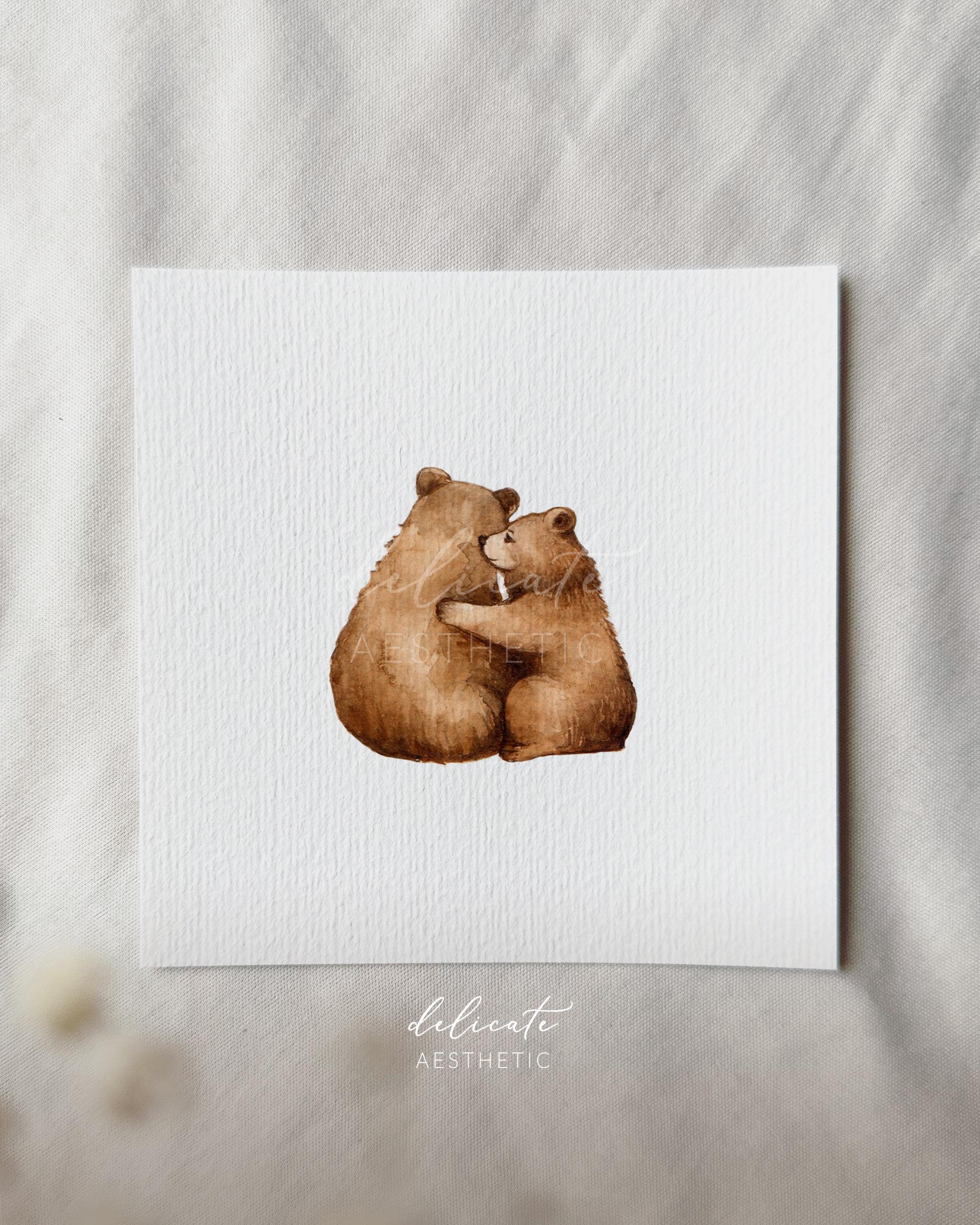 Strong together - Bear love - Miniature art print - Print from my original watercolor | DelicateAesthetic