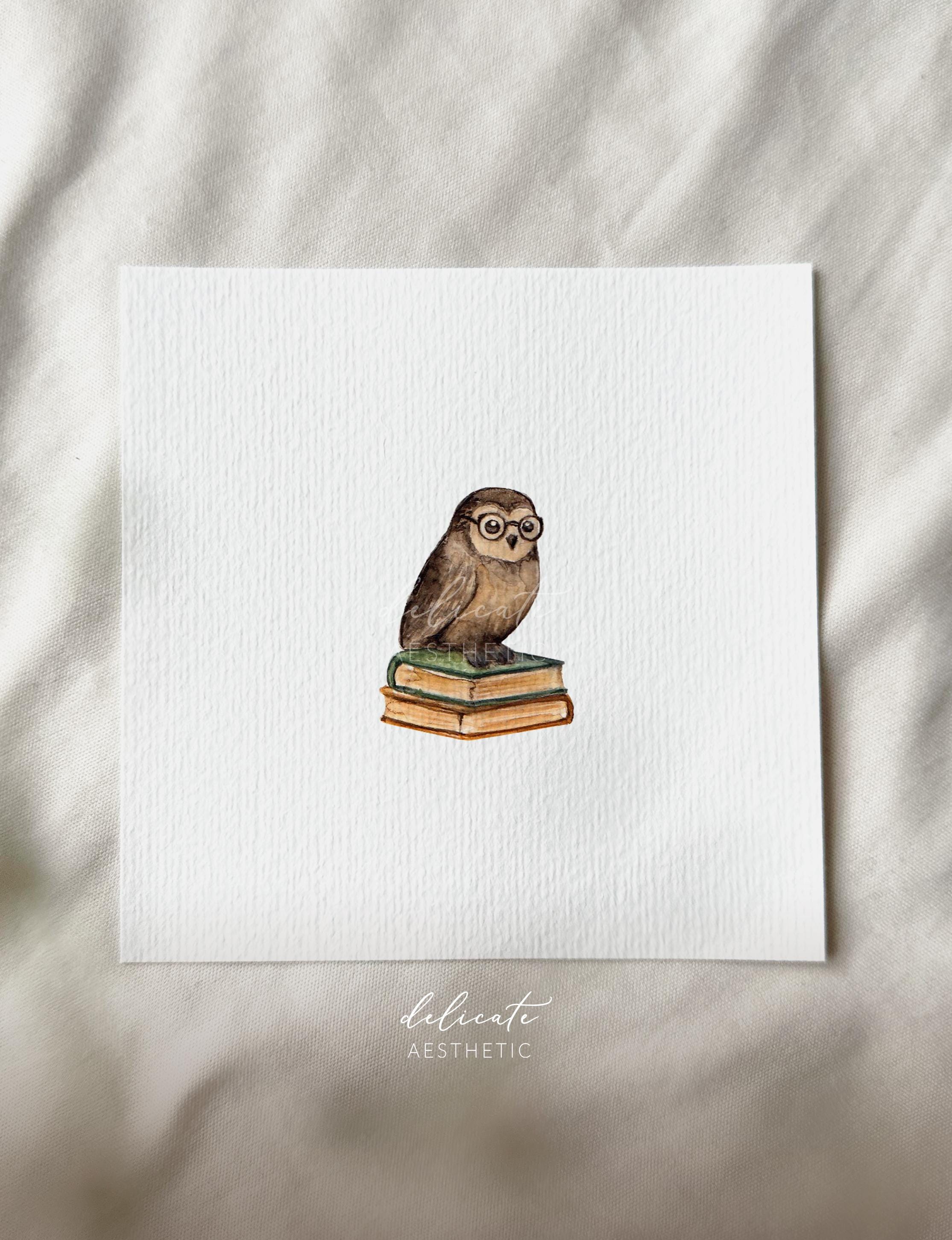 The Owl's Library - Miniature Art Print - Print from my original watercolor | DelicateAesthetic