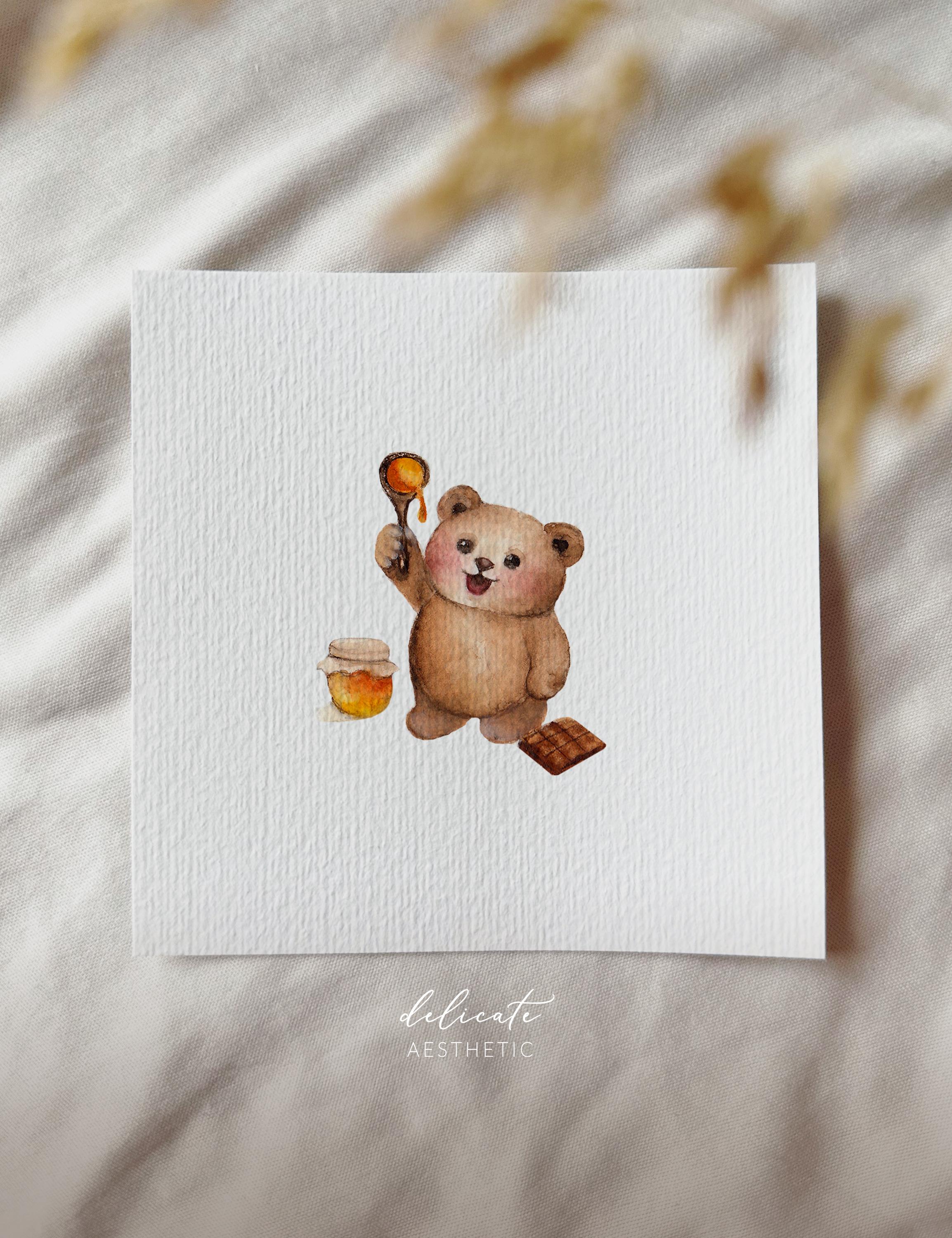 The Little Sweet Tooth Bear - Miniature Art Print - Print based on my original watercolor - DelicateAesthetic