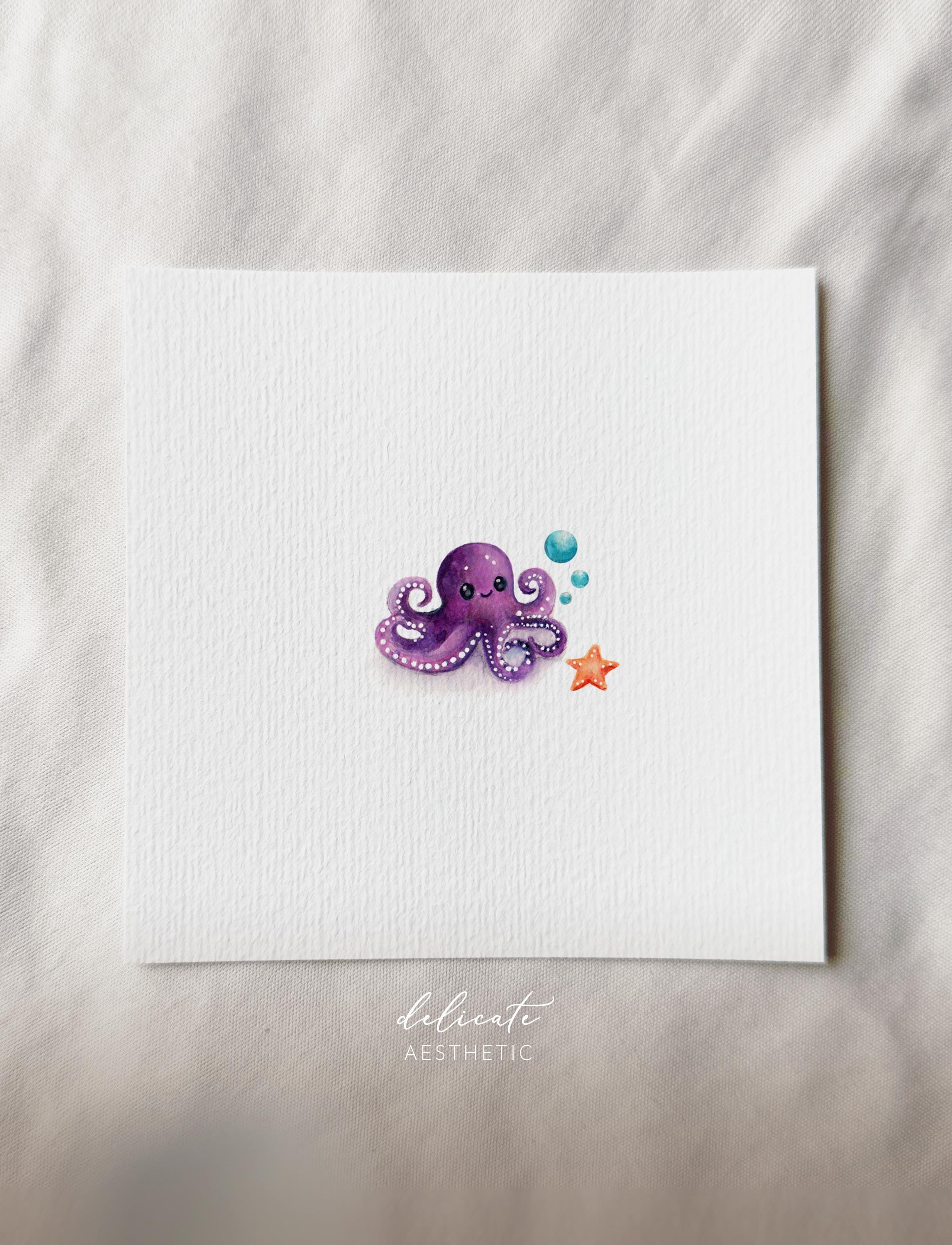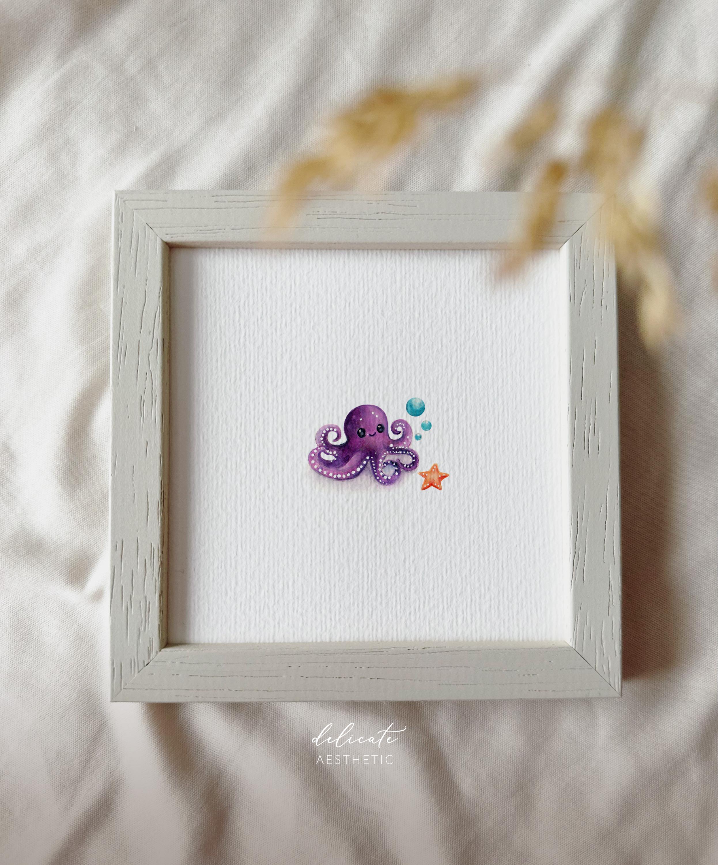 The Cheerful Octopus & Starfish - Miniature Art Print - Print based on my original watercolor | DelicateAesthetic