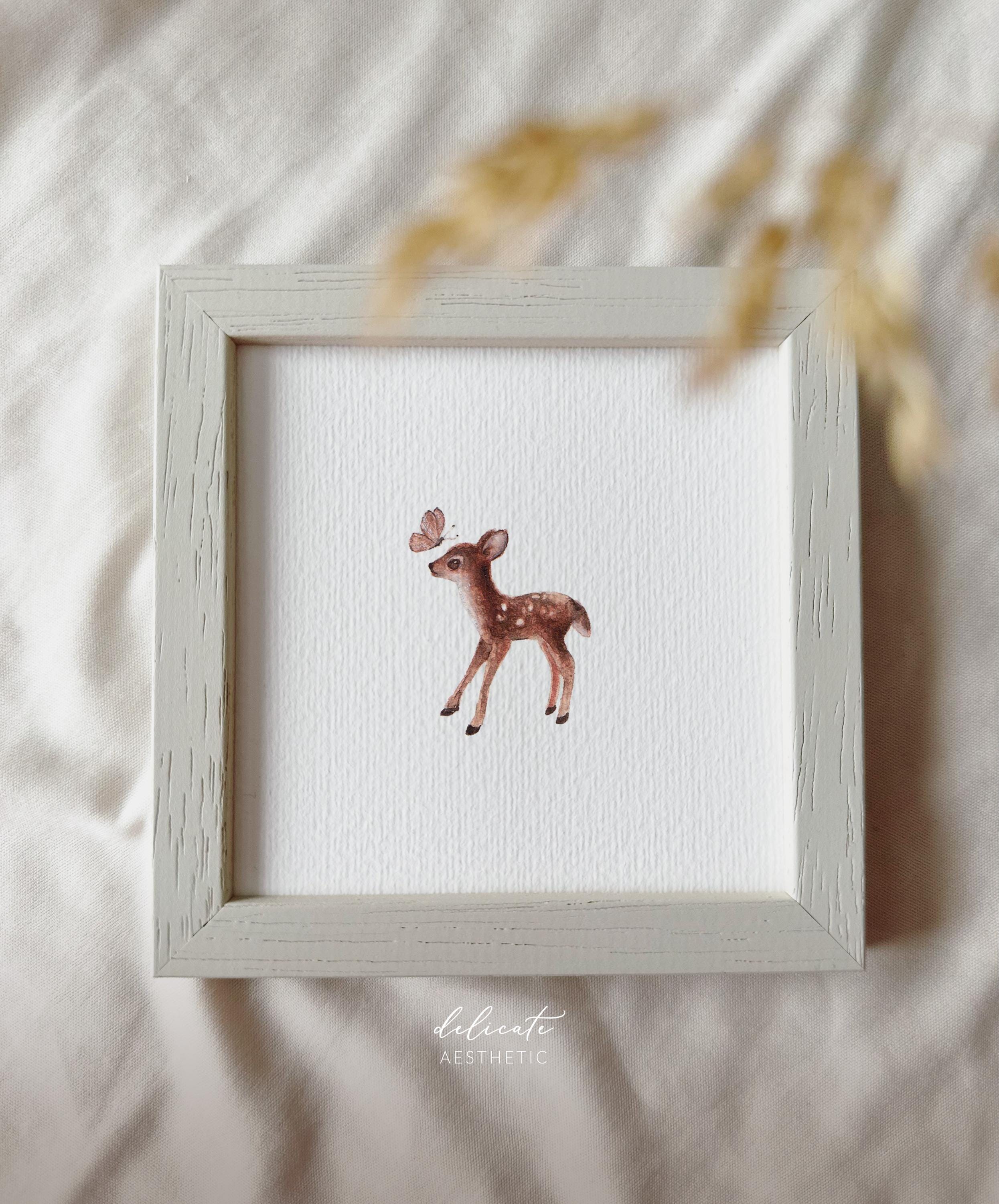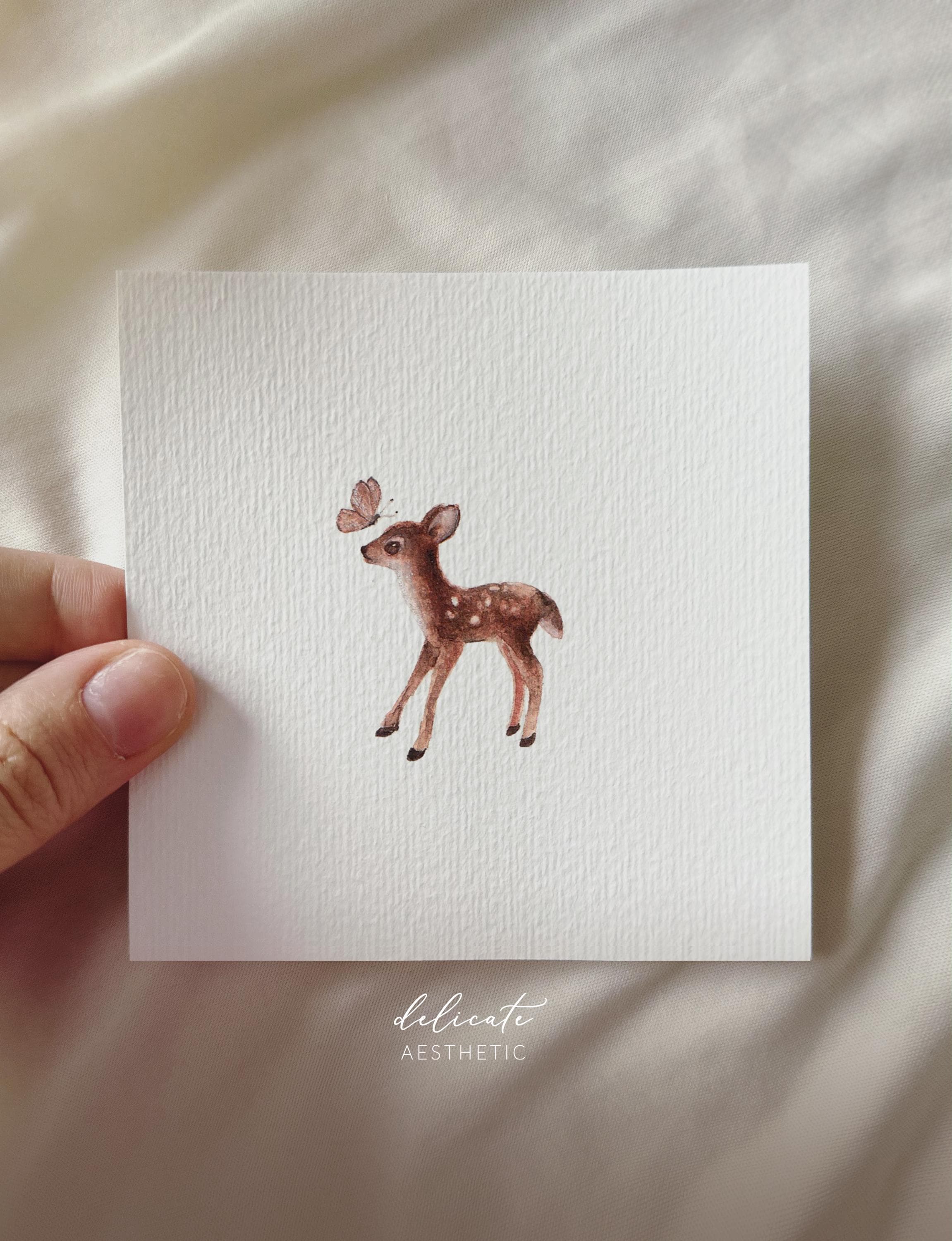 Fawn with pink butterfly - miniature art print - print from my original watercolor | DelicateAesthetic